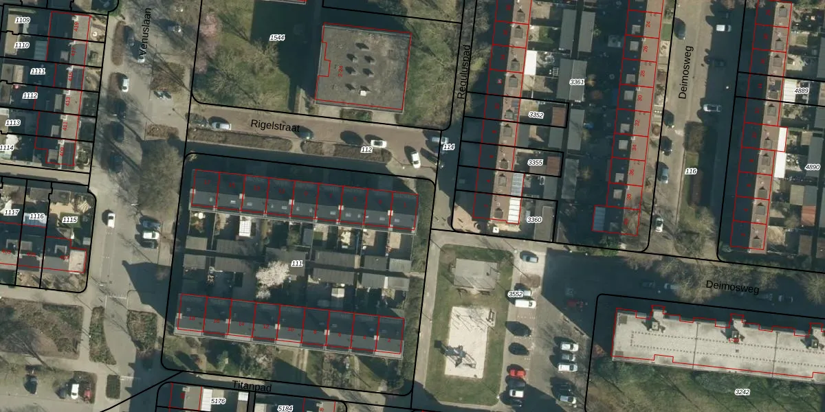 Het perceel waarop Rigelstraat 1 staat heeft een oppervlakte van 3245 m². Dit is een zeer groot perceel. De perceeloppervlakte wordt geregistreerd door het Kadaster. Gedetailleerde informatie over de maten van dit perceel kunt u vinden in het rapport Kadastrale kaart met maatvoering van Rigelstraat 1.