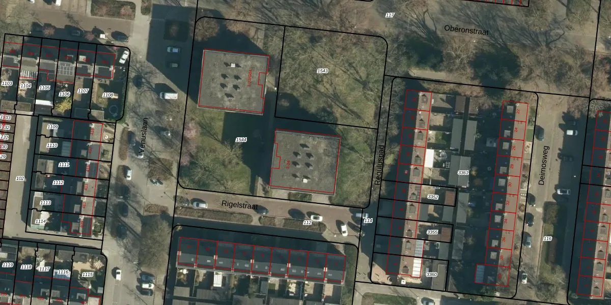 Het perceel waarop Rigelstraat 12 staat heeft een oppervlakte van 2562 m². Dit is een zeer groot perceel. De perceeloppervlakte wordt geregistreerd door het Kadaster. Gedetailleerde informatie over de maten van dit perceel kunt u vinden in het rapport Kadastrale kaart met maatvoering van Rigelstraat 12.