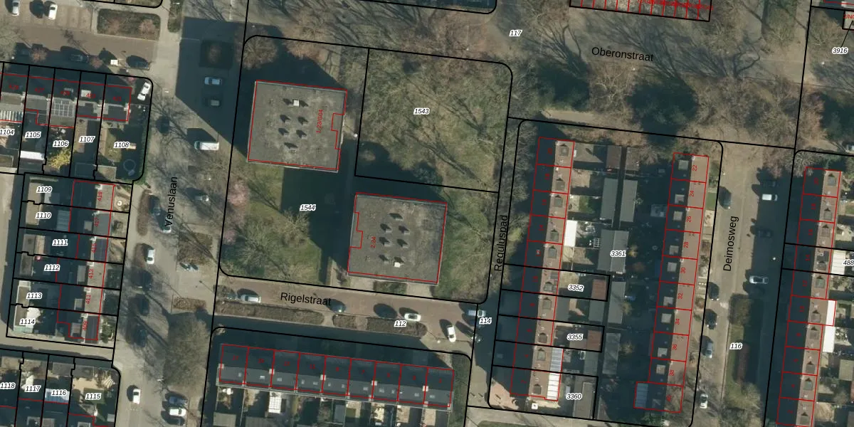 Het perceel waarop Rigelstraat 18 staat heeft een oppervlakte van 2562 m². Dit is een zeer groot perceel. De perceeloppervlakte wordt geregistreerd door het Kadaster. Gedetailleerde informatie over de maten van dit perceel kunt u vinden in het rapport Kadastrale kaart met maatvoering van Rigelstraat 18.