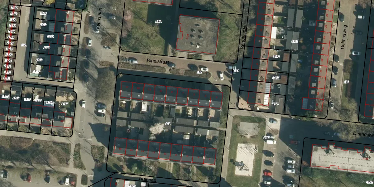 Het perceel waarop Rigelstraat 7 staat heeft een oppervlakte van 3245 m². Dit is een zeer groot perceel. De perceeloppervlakte wordt geregistreerd door het Kadaster. Gedetailleerde informatie over de maten van dit perceel kunt u vinden in het rapport Kadastrale kaart met maatvoering van Rigelstraat 7.