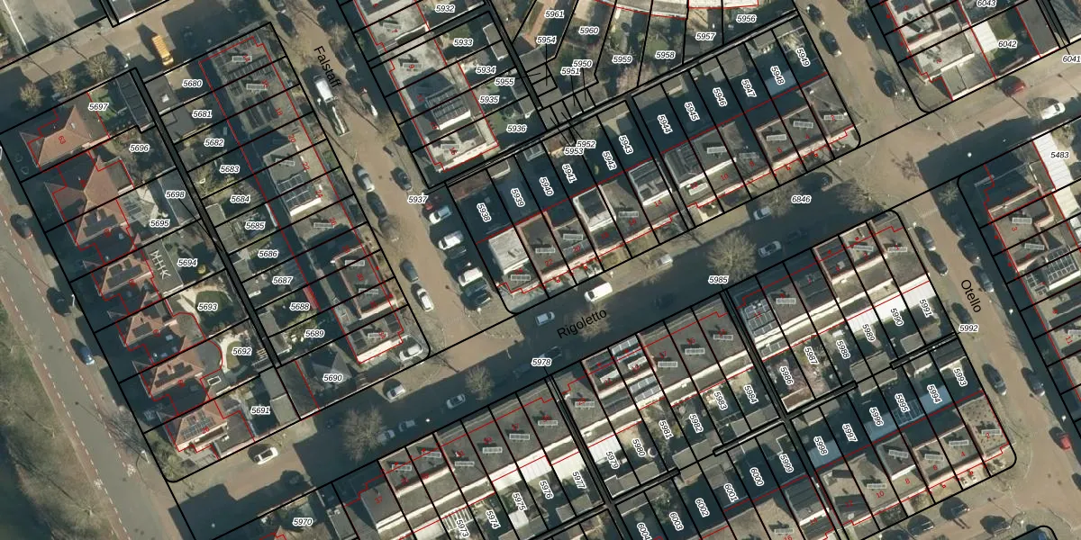 Het perceel waarop Rigoletto 22 staat heeft een oppervlakte van 153 m². Dit is een middelgroot perceel. De perceeloppervlakte wordt geregistreerd door het Kadaster. Gedetailleerde informatie over de maten van dit perceel kunt u vinden in het rapport Kadastrale kaart met maatvoering van Rigoletto 22.