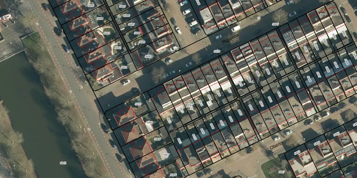 Het perceel waarop Rigoletto 33 staat heeft een oppervlakte van 147 m². Dit is een middelgroot perceel. De perceeloppervlakte wordt geregistreerd door het Kadaster. Gedetailleerde informatie over de maten van dit perceel kunt u vinden in het rapport Kadastrale kaart met maatvoering van Rigoletto 33.