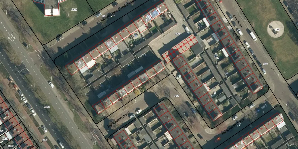 Rijckwaertstraat 15 is gelegen op kadastraal perceel WSL01P2857. Deze kadastrale aanduiding is uniek en wordt gebruikt door het Kadaster om eigendomsrechten en andere zakelijke rechten vast te leggen. Het perceel maakt onderdeel uit van de kadastrale gemeente Woensel.