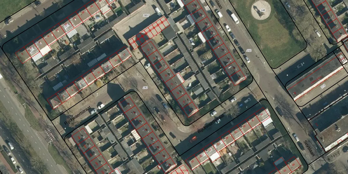 Het perceel waarop Rijckwaertstraat 27 staat heeft een oppervlakte van 7942 m². Dit is een zeer groot perceel. De perceeloppervlakte wordt geregistreerd door het Kadaster. Gedetailleerde informatie over de maten van dit perceel kunt u vinden in het rapport Kadastrale kaart met maatvoering van Rijckwaertstraat 27.