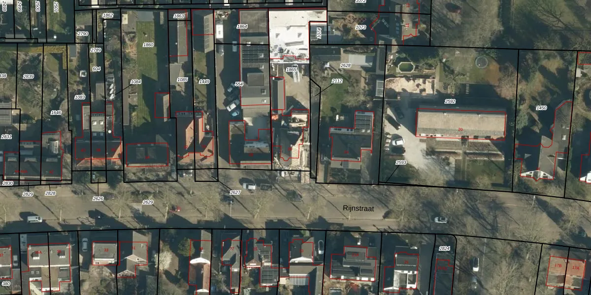 Het perceel waarop Rijnstraat 26 staat heeft een oppervlakte van 768 m². Dit is een groot perceel. De perceeloppervlakte wordt geregistreerd door het Kadaster. Gedetailleerde informatie over de maten van dit perceel kunt u vinden in het rapport Kadastrale kaart met maatvoering van Rijnstraat 26.
