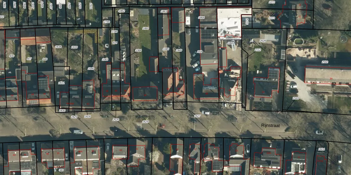 Het perceel waarop Rijnstraat 30 staat heeft een oppervlakte van 413 m². Dit is een groot perceel. De perceeloppervlakte wordt geregistreerd door het Kadaster. Gedetailleerde informatie over de maten van dit perceel kunt u vinden in het rapport Kadastrale kaart met maatvoering van Rijnstraat 30.