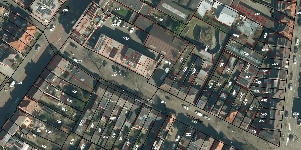 Rivierstraat 5-B is gelegen op kadastraal perceel GTL01C4608. Deze kadastrale aanduiding is uniek en wordt gebruikt door het Kadaster om eigendomsrechten en andere zakelijke rechten vast te leggen. Het perceel maakt onderdeel uit van de kadastrale gemeente Gestel.