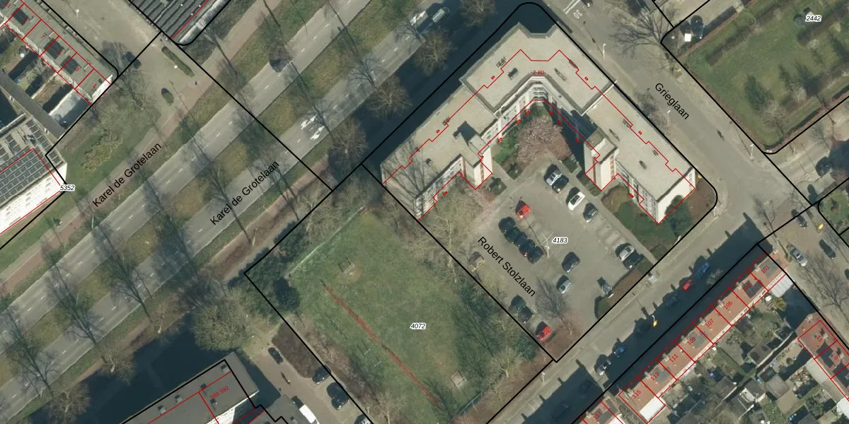 Het perceel waarop Robert Stolzlaan 80 staat heeft een oppervlakte van 3656 m². Dit is een zeer groot perceel. De perceeloppervlakte wordt geregistreerd door het Kadaster. Gedetailleerde informatie over de maten van dit perceel kunt u vinden in het rapport Kadastrale kaart met maatvoering van Robert Stolzlaan 80.