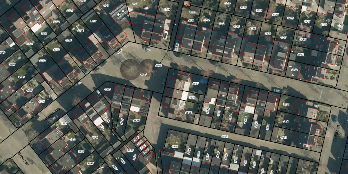 Het perceel waarop Robijnring 50 staat heeft een oppervlakte van 256 m². Dit is een middelgroot perceel. De perceeloppervlakte wordt geregistreerd door het Kadaster. Gedetailleerde informatie over de maten van dit perceel kunt u vinden in het rapport Kadastrale kaart met maatvoering van Robijnring 50.