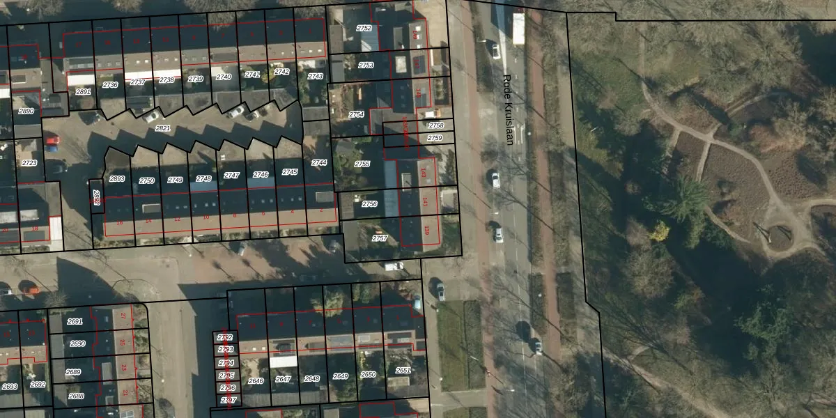 Rode Kruislaan 141 is gelegen op kadastraal perceel WSL01W2756. Deze kadastrale aanduiding is uniek en wordt gebruikt door het Kadaster om eigendomsrechten en andere zakelijke rechten vast te leggen. Het perceel maakt onderdeel uit van de kadastrale gemeente Woensel.