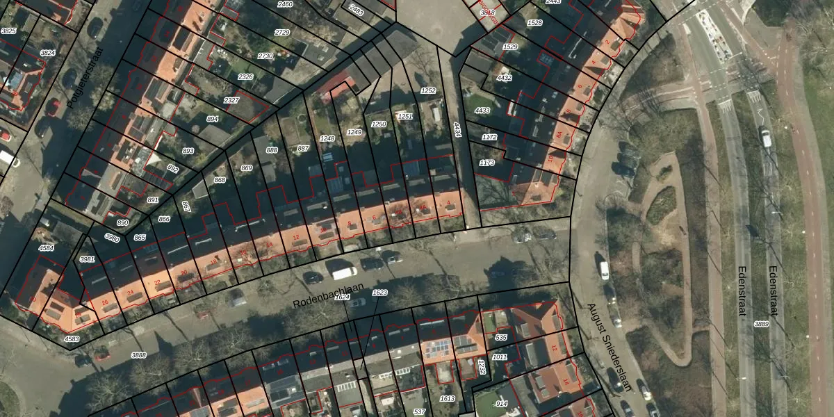 Gebruik de zoekbalk of klik op een perceel voor informatie over de adressen binnen dit perceel.