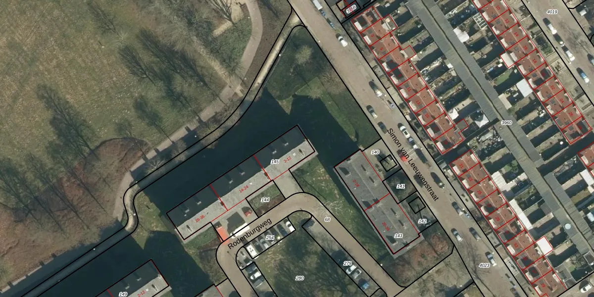 Rodenburgweg 6 is gelegen op kadastraal perceel STR03E145. Deze kadastrale aanduiding is uniek en wordt gebruikt door het Kadaster om eigendomsrechten en andere zakelijke rechten vast te leggen. Het perceel maakt onderdeel uit van de kadastrale gemeente Strijp.