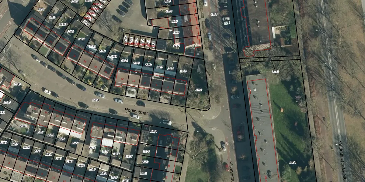 Rodinstraat 2 is gelegen op kadastraal perceel WSL01L2899. Deze kadastrale aanduiding is uniek en wordt gebruikt door het Kadaster om eigendomsrechten en andere zakelijke rechten vast te leggen. Het perceel maakt onderdeel uit van de kadastrale gemeente Woensel.