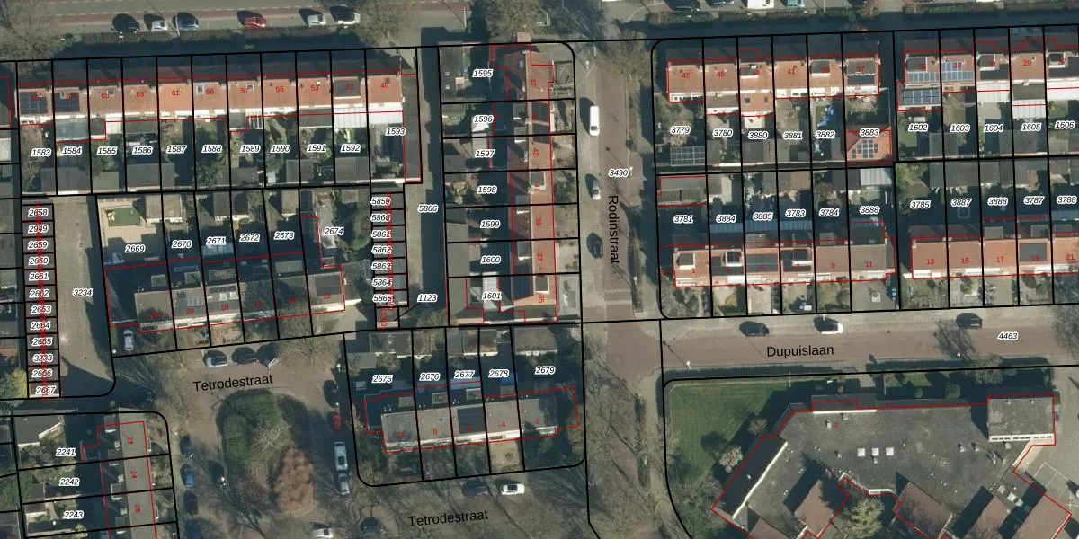 Gebruik de zoekbalk of klik op een perceel voor informatie over de adressen binnen dit perceel.