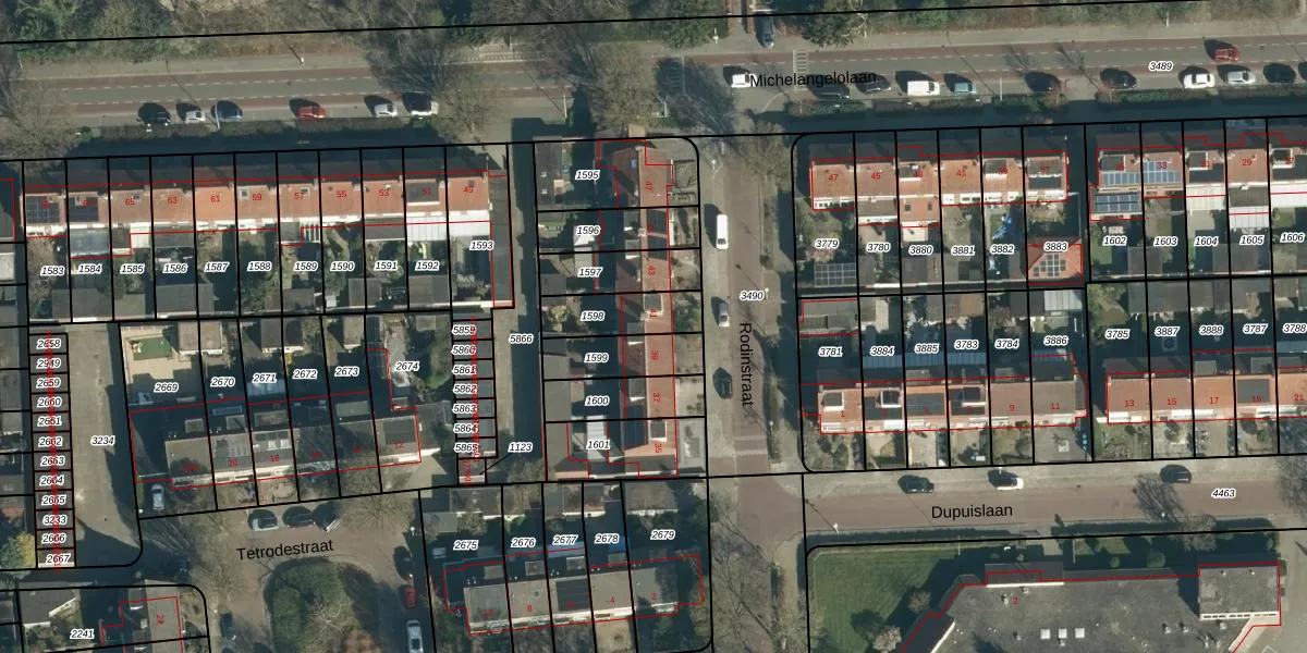 Het perceel waarop Rodinstraat 41 staat heeft een oppervlakte van 162 m². Dit is een middelgroot perceel. De perceeloppervlakte wordt geregistreerd door het Kadaster. Gedetailleerde informatie over de maten van dit perceel kunt u vinden in het rapport Kadastrale kaart met maatvoering van Rodinstraat 41.