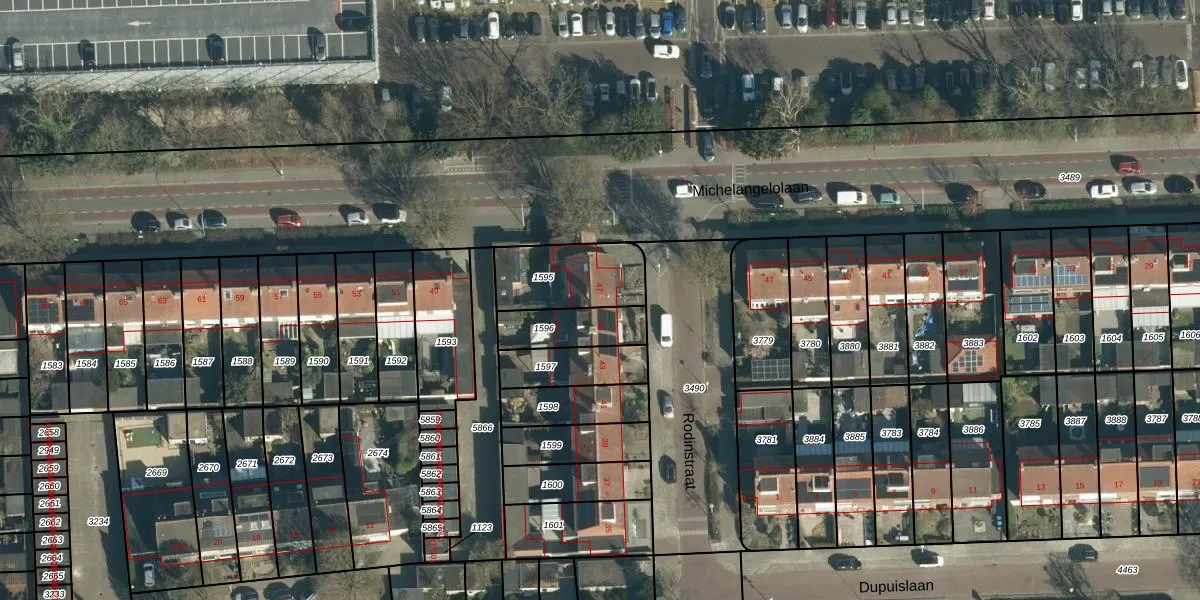 Het perceel waarop Rodinstraat 47 staat heeft een oppervlakte van 263 m². Dit is een middelgroot perceel. De perceeloppervlakte wordt geregistreerd door het Kadaster. Gedetailleerde informatie over de maten van dit perceel kunt u vinden in het rapport Kadastrale kaart met maatvoering van Rodinstraat 47.