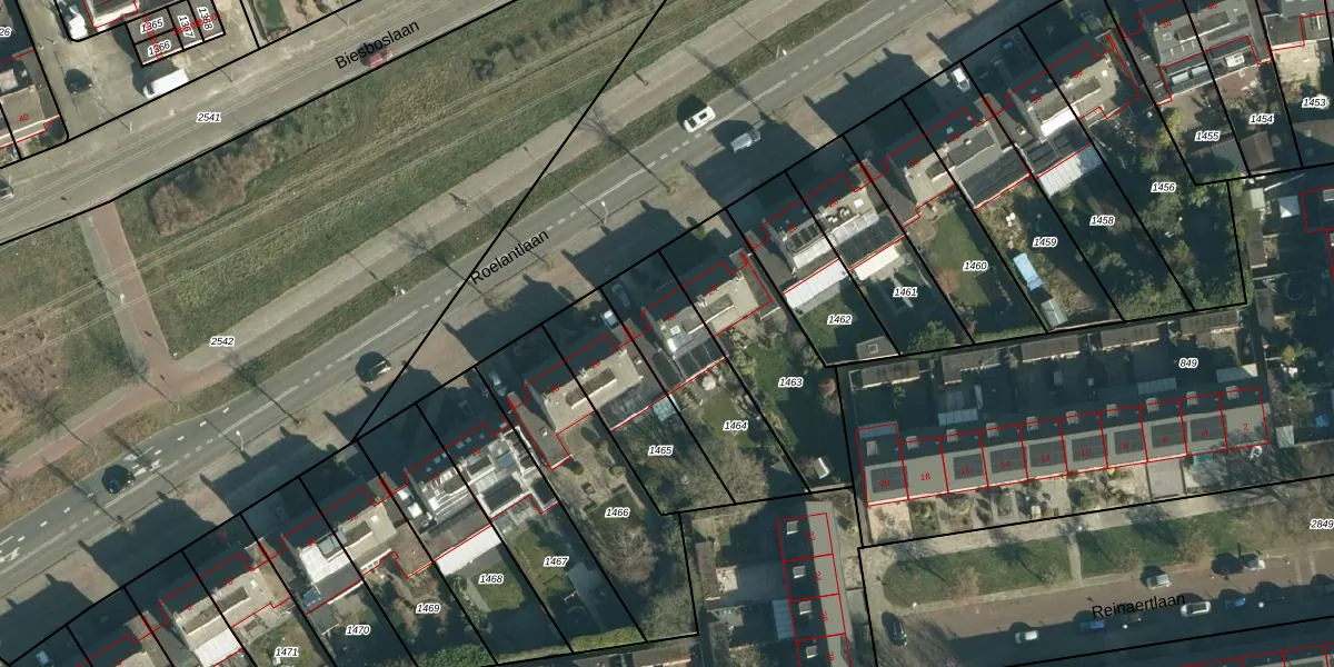 Het perceel waarop Roelantlaan 22 staat heeft een oppervlakte van 425 m². Dit is een groot perceel. De perceeloppervlakte wordt geregistreerd door het Kadaster. Gedetailleerde informatie over de maten van dit perceel kunt u vinden in het rapport Kadastrale kaart met maatvoering van Roelantlaan 22.