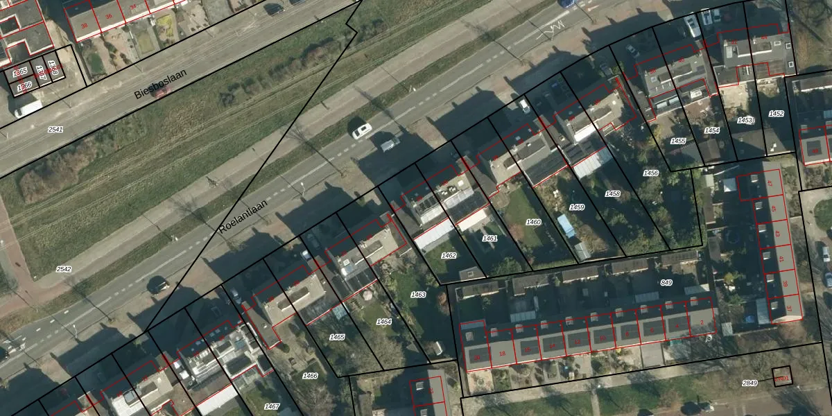 Het perceel waarop Roelantlaan 26 staat heeft een oppervlakte van 319 m². Dit is een groot perceel. De perceeloppervlakte wordt geregistreerd door het Kadaster. Gedetailleerde informatie over de maten van dit perceel kunt u vinden in het rapport Kadastrale kaart met maatvoering van Roelantlaan 26.
