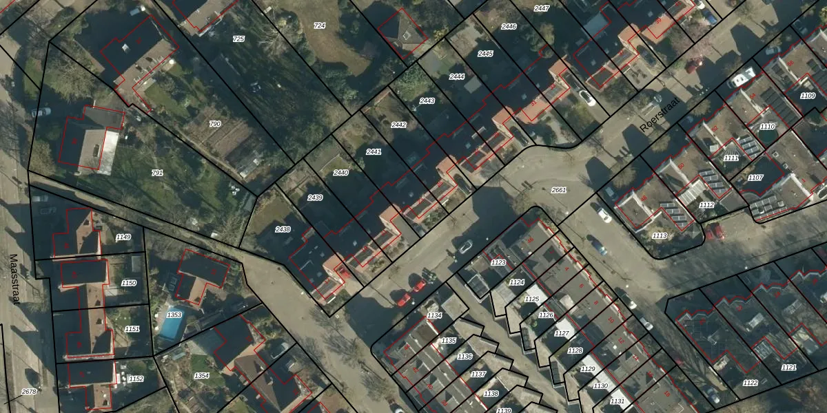 Roerstraat 23 is gelegen op kadastraal perceel WSL01T2441. Deze kadastrale aanduiding is uniek en wordt gebruikt door het Kadaster om eigendomsrechten en andere zakelijke rechten vast te leggen. Het perceel maakt onderdeel uit van de kadastrale gemeente Woensel.