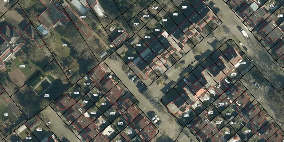 Het perceel waarop Roerstraat 79 staat heeft een oppervlakte van 377 m². Dit is een groot perceel. De perceeloppervlakte wordt geregistreerd door het Kadaster. Gedetailleerde informatie over de maten van dit perceel kunt u vinden in het rapport Kadastrale kaart met maatvoering van Roerstraat 79.