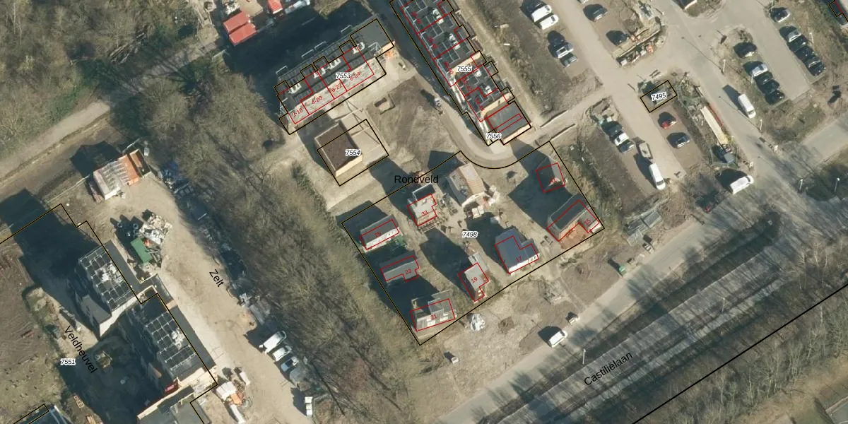 Het perceel waarop Rondveld 33 staat heeft een oppervlakte van 1566 m². Dit is een zeer groot perceel. De perceeloppervlakte wordt geregistreerd door het Kadaster. Gedetailleerde informatie over de maten van dit perceel kunt u vinden in het rapport Kadastrale kaart met maatvoering van Rondveld 33.