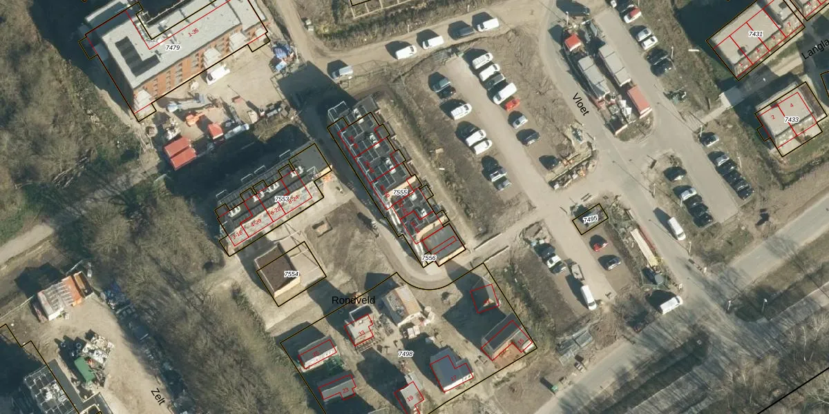 Rondveld 42 is gelegen op kadastraal perceel WSL01W7555. Deze kadastrale aanduiding is uniek en wordt gebruikt door het Kadaster om eigendomsrechten en andere zakelijke rechten vast te leggen. Het perceel maakt onderdeel uit van de kadastrale gemeente Woensel.