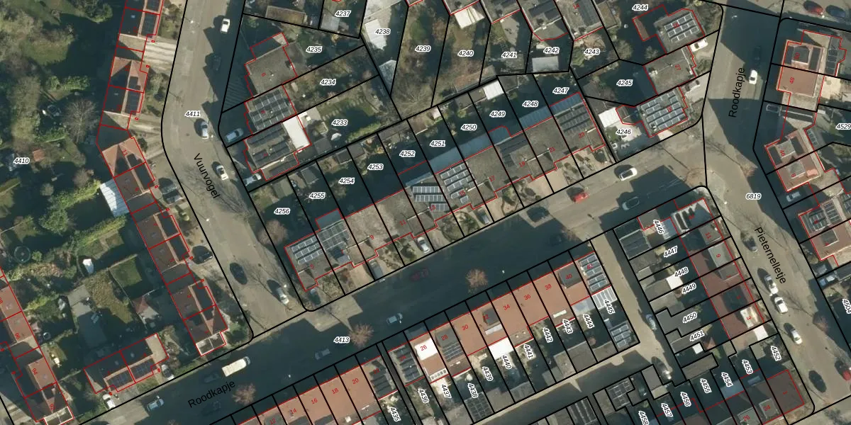 Roodkapje 13 is gelegen op kadastraal perceel WSL01W4252. Deze kadastrale aanduiding is uniek en wordt gebruikt door het Kadaster om eigendomsrechten en andere zakelijke rechten vast te leggen. Het perceel maakt onderdeel uit van de kadastrale gemeente Woensel.