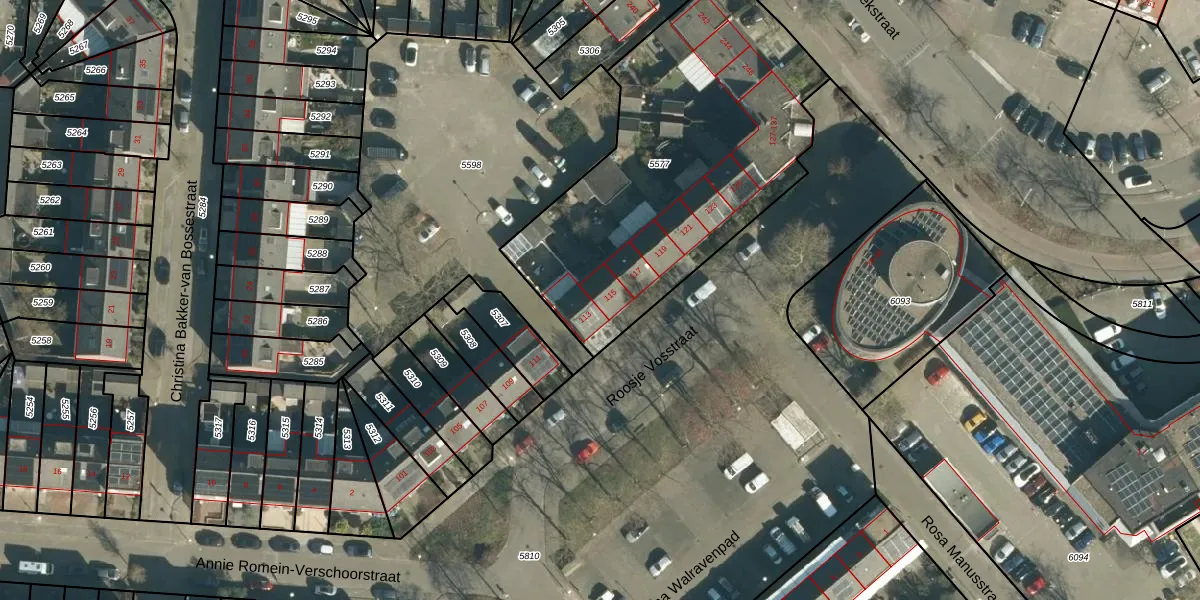 Roosje Vosstraat 115 is gelegen op kadastraal perceel WSL01G5577. Deze kadastrale aanduiding is uniek en wordt gebruikt door het Kadaster om eigendomsrechten en andere zakelijke rechten vast te leggen. Het perceel maakt onderdeel uit van de kadastrale gemeente Woensel.