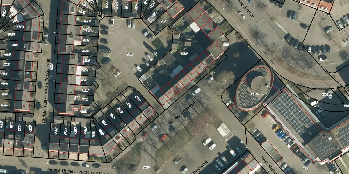 Roosje Vosstraat 117 is gelegen op kadastraal perceel WSL01G5577. Deze kadastrale aanduiding is uniek en wordt gebruikt door het Kadaster om eigendomsrechten en andere zakelijke rechten vast te leggen. Het perceel maakt onderdeel uit van de kadastrale gemeente Woensel.
