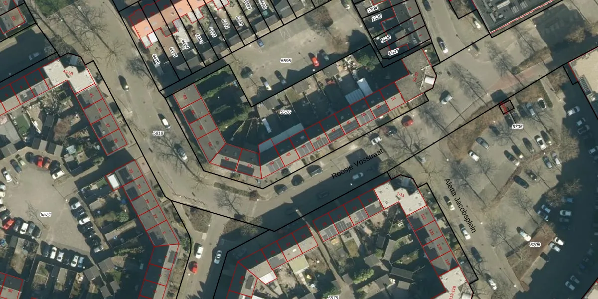 Roosje Vosstraat 46 is gelegen op kadastraal perceel WSL01G5576. Deze kadastrale aanduiding is uniek en wordt gebruikt door het Kadaster om eigendomsrechten en andere zakelijke rechten vast te leggen. Het perceel maakt onderdeel uit van de kadastrale gemeente Woensel.