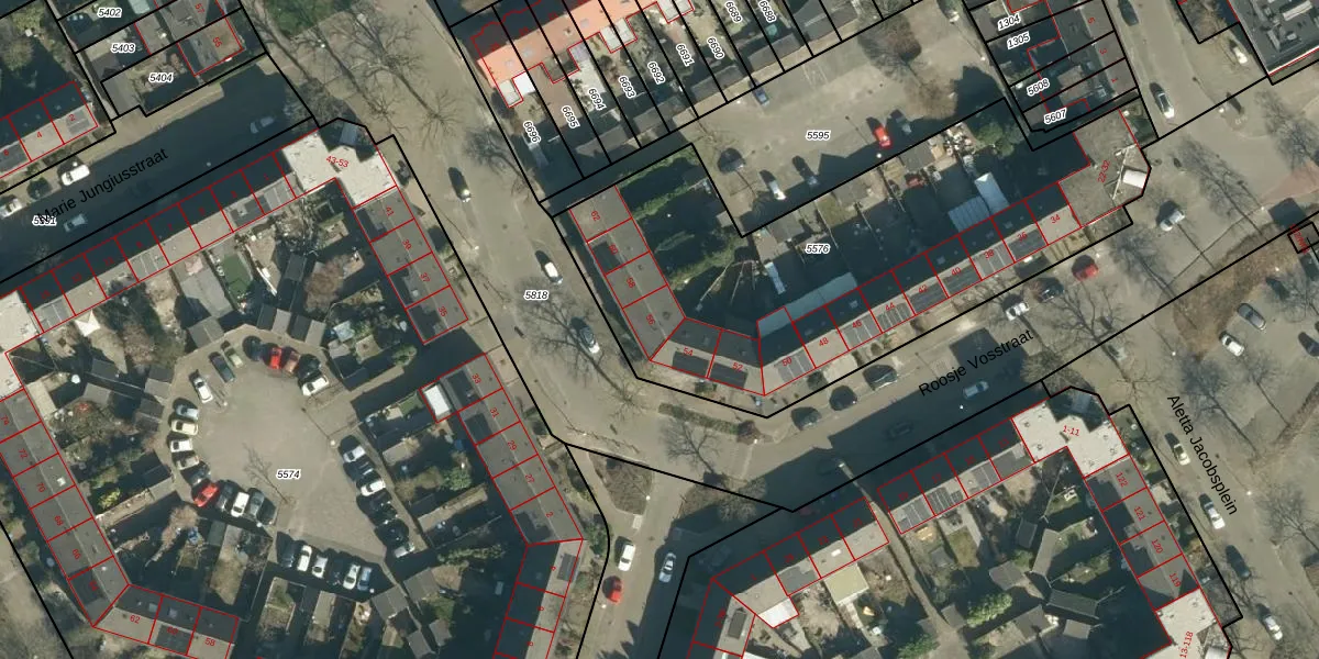 Het perceel waarop Roosje Vosstraat 56 staat heeft een oppervlakte van 2322 m². Dit is een zeer groot perceel. De perceeloppervlakte wordt geregistreerd door het Kadaster. Gedetailleerde informatie over de maten van dit perceel kunt u vinden in het rapport Kadastrale kaart met maatvoering van Roosje Vosstraat 56.