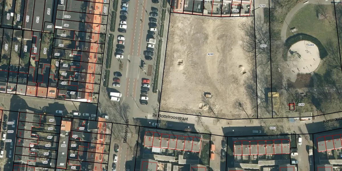 Het perceel waarop Roostenlaan 103-B staat heeft een oppervlakte van 3172 m². Dit is een zeer groot perceel. De perceeloppervlakte wordt geregistreerd door het Kadaster. Gedetailleerde informatie over de maten van dit perceel kunt u vinden in het rapport Kadastrale kaart met maatvoering van Roostenlaan 103-B.