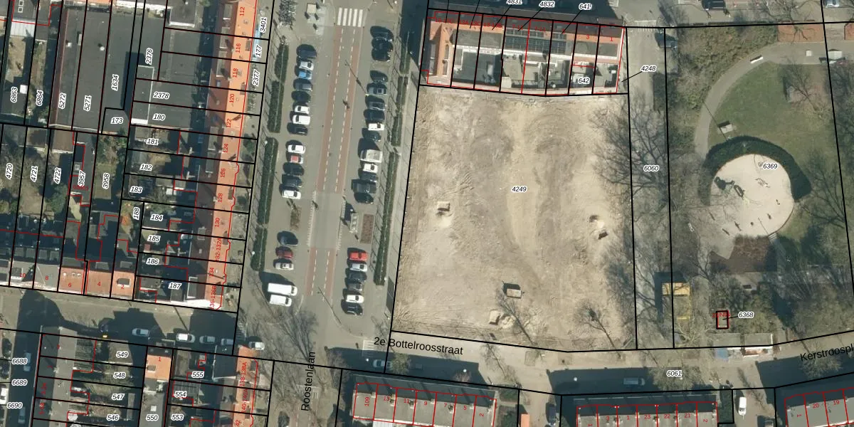 Het perceel waarop Roostenlaan 103-D staat heeft een oppervlakte van 3172 m². Dit is een zeer groot perceel. De perceeloppervlakte wordt geregistreerd door het Kadaster. Gedetailleerde informatie over de maten van dit perceel kunt u vinden in het rapport Kadastrale kaart met maatvoering van Roostenlaan 103-D.