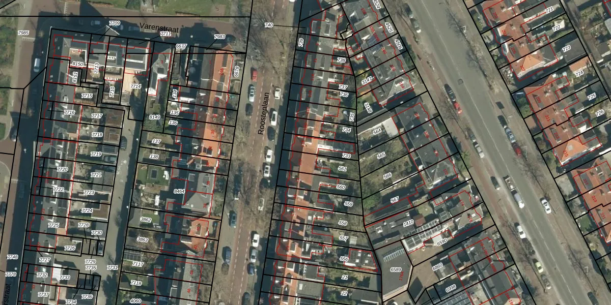 Gebruik de zoekbalk of klik op een perceel voor informatie over de adressen binnen dit perceel.