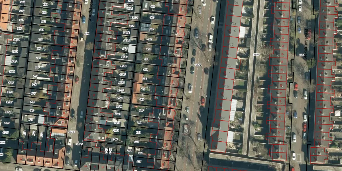 Gebruik de zoekbalk of klik op een perceel voor informatie over de adressen binnen dit perceel.