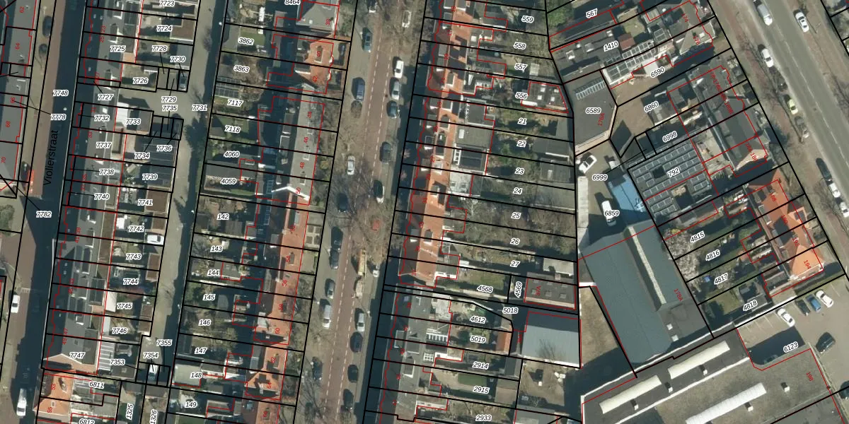 Gebruik de zoekbalk of klik op een perceel voor informatie over de adressen binnen dit perceel.