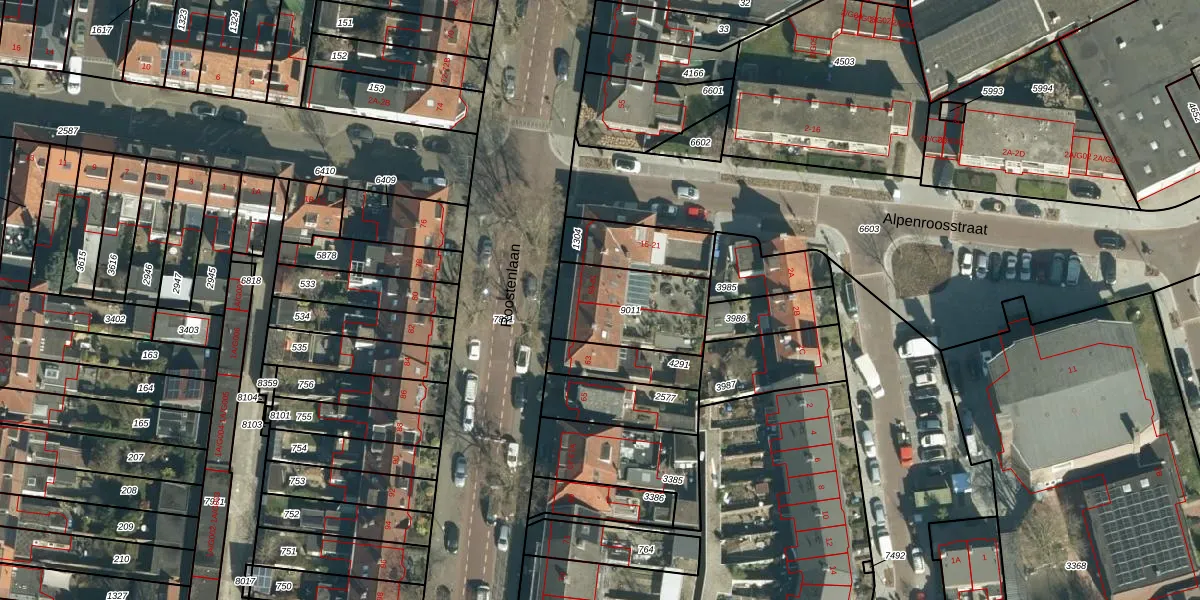 Het perceel waarop Roostenlaan 59 staat heeft een oppervlakte van 326 m². Dit is een groot perceel. De perceeloppervlakte wordt geregistreerd door het Kadaster. Gedetailleerde informatie over de maten van dit perceel kunt u vinden in het rapport Kadastrale kaart met maatvoering van Roostenlaan 59.