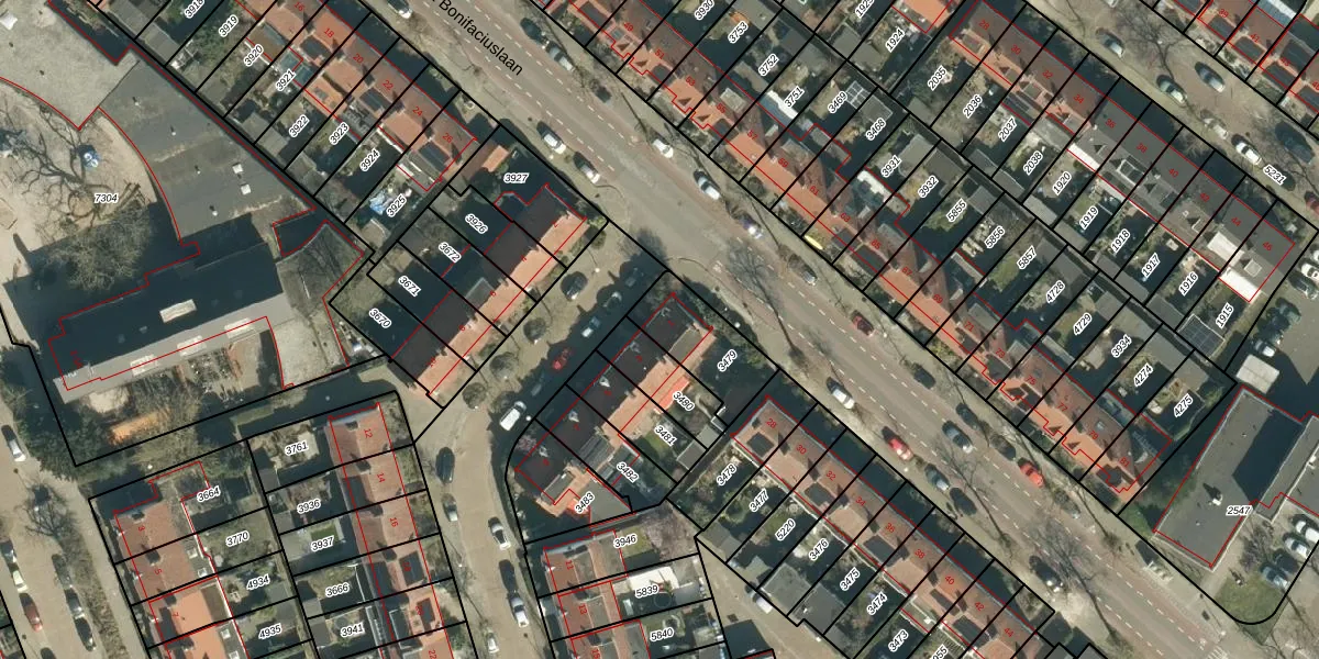 Gebruik de zoekbalk of klik op een perceel voor informatie over de adressen binnen dit perceel.
