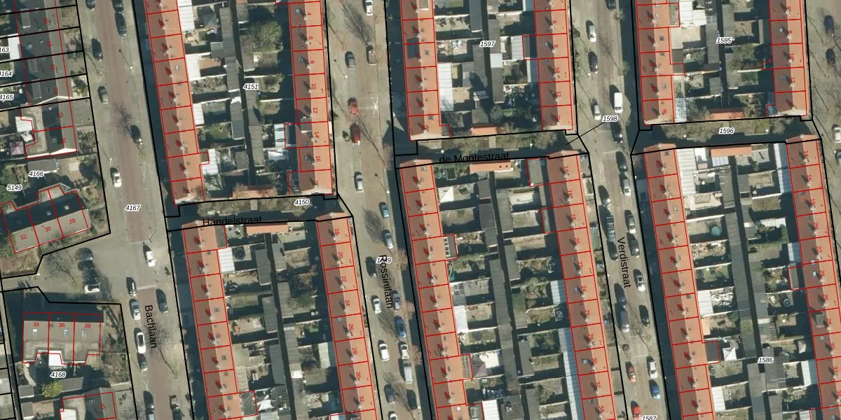 Het perceel waarop Rossinilaan 15 staat heeft een oppervlakte van 6330 m². Dit is een zeer groot perceel. De perceeloppervlakte wordt geregistreerd door het Kadaster. Gedetailleerde informatie over de maten van dit perceel kunt u vinden in het rapport Kadastrale kaart met maatvoering van Rossinilaan 15.