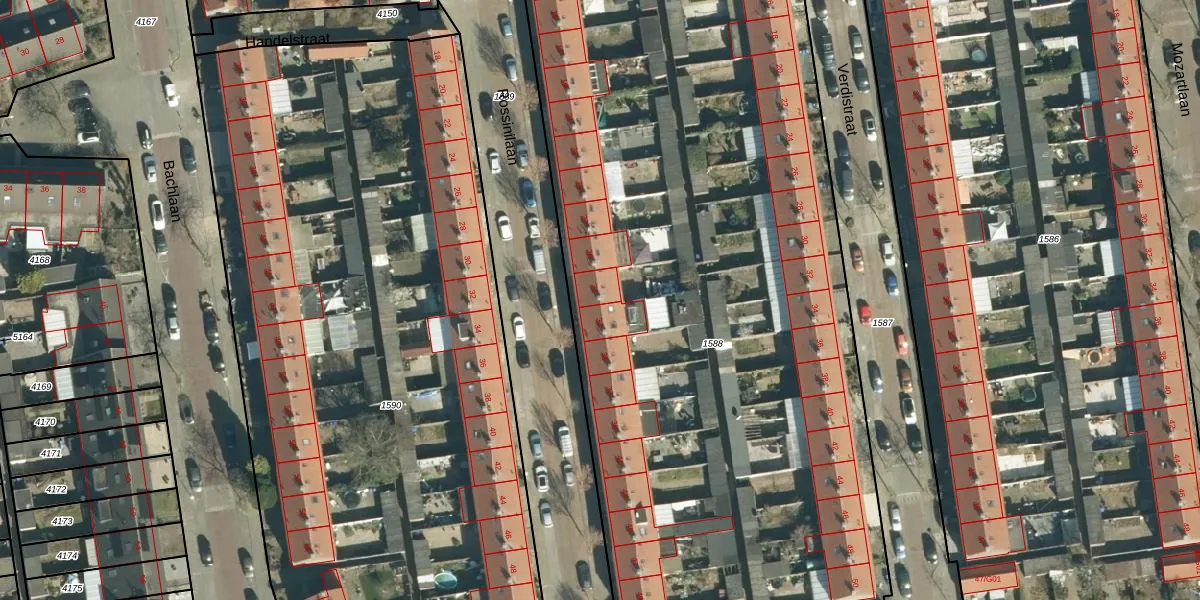 Het perceel waarop Rossinilaan 31 staat heeft een oppervlakte van 6330 m². Dit is een zeer groot perceel. De perceeloppervlakte wordt geregistreerd door het Kadaster. Gedetailleerde informatie over de maten van dit perceel kunt u vinden in het rapport Kadastrale kaart met maatvoering van Rossinilaan 31.