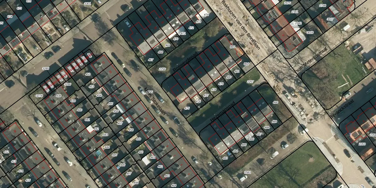 Het adres is gelegen op perceel 476 in de sectie P en de kadastrale gemeente Woensel. De kadastrale aanduiding is aldus WSL01-P-476. Het perceel is kleiner dan gemiddeld in Woensel. Het perceel is 118 m² groot, terwijl het gemiddelde ligt op 1039,13 m². De grootste perceeloppervlakte in de kadastrale gemeente is 74,9 ha. De kleinste oppervlakte bedraagt 0 m². Dit is het enige adres dat aanwezig is op het perceel. De huidige grenzen van het perceel zijn digitaal in de Basisregistratie Kadaster (BRK) geregistreerd op 25-04-2006.