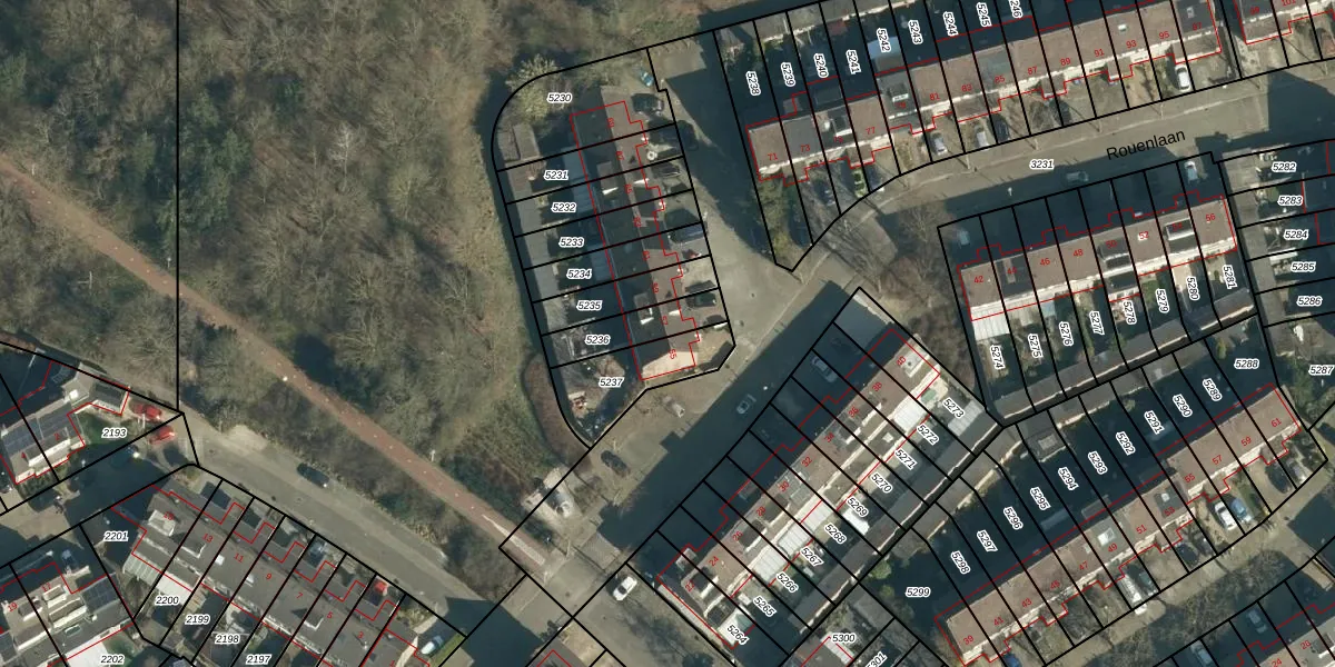 Rouenlaan 57 is gelegen op kadastraal perceel WSL01W5236. Deze kadastrale aanduiding is uniek en wordt gebruikt door het Kadaster om eigendomsrechten en andere zakelijke rechten vast te leggen. Het perceel maakt onderdeel uit van de kadastrale gemeente Woensel.