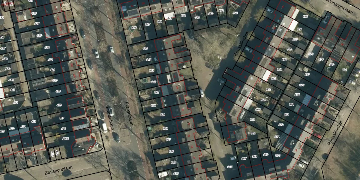 Gebruik de zoekbalk of klik op een perceel voor informatie over de adressen binnen dit perceel.