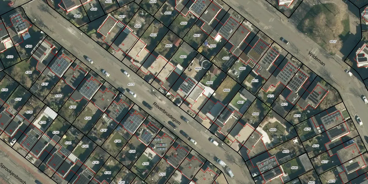 Roverbruidegom 28 is gelegen op kadastraal perceel WSL01W4664. Deze kadastrale aanduiding is uniek en wordt gebruikt door het Kadaster om eigendomsrechten en andere zakelijke rechten vast te leggen. Het perceel maakt onderdeel uit van de kadastrale gemeente Woensel.