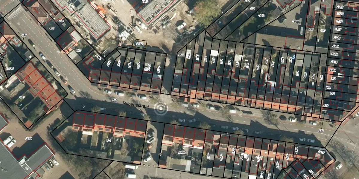Rubensstraat 36 is gelegen op kadastraal perceel TGR00E157. Deze kadastrale aanduiding is uniek en wordt gebruikt door het Kadaster om eigendomsrechten en andere zakelijke rechten vast te leggen. Het perceel maakt onderdeel uit van de kadastrale gemeente Tongelre.