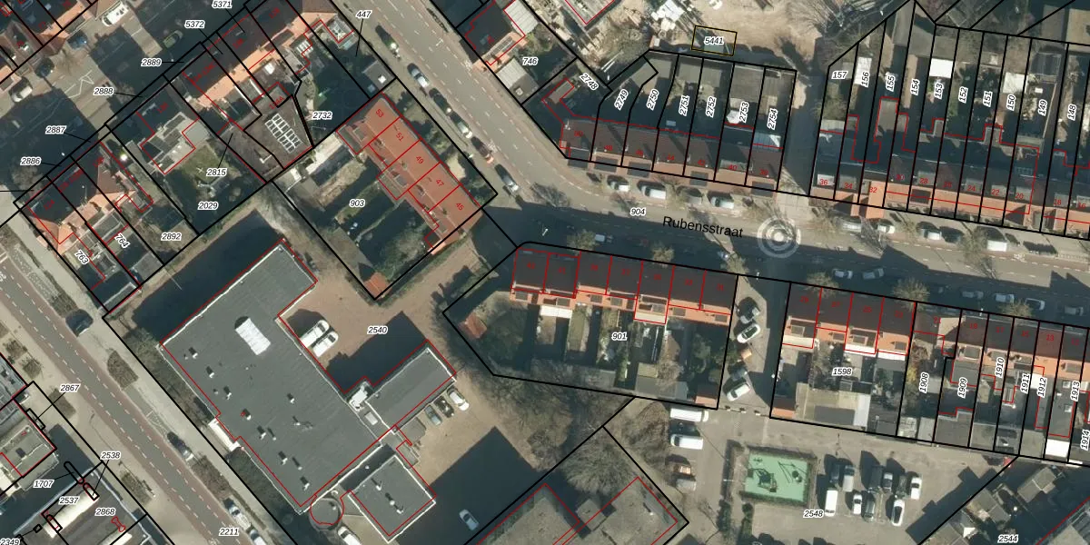 Rubensstraat 43 is gelegen op kadastraal perceel TGR00E901. Deze kadastrale aanduiding is uniek en wordt gebruikt door het Kadaster om eigendomsrechten en andere zakelijke rechten vast te leggen. Het perceel maakt onderdeel uit van de kadastrale gemeente Tongelre.