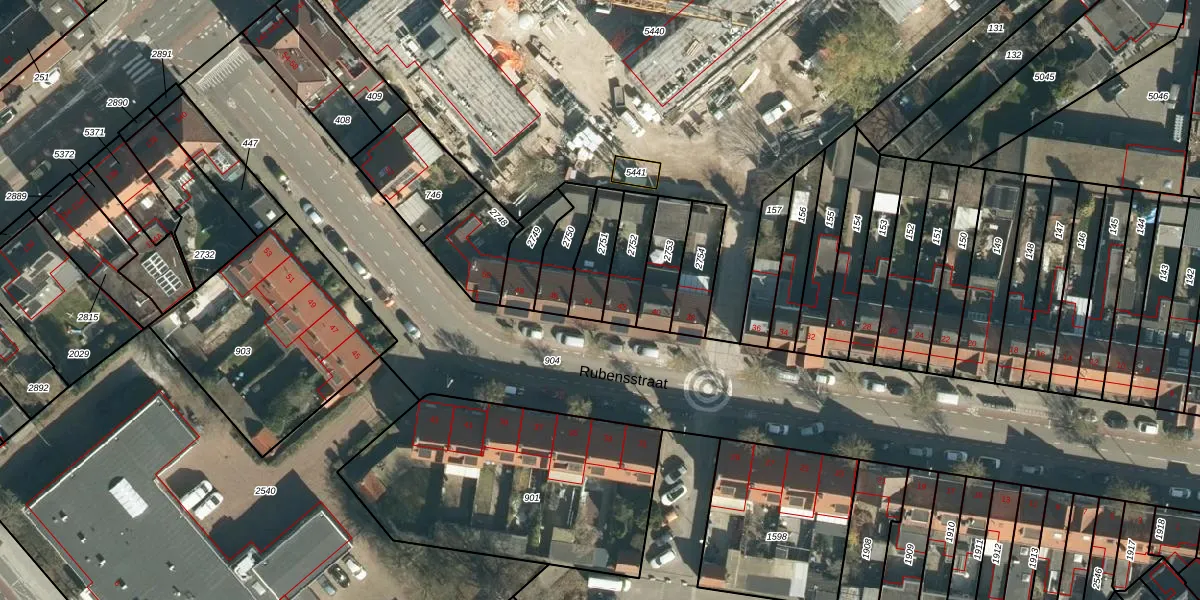 Rubensstraat 44 is gelegen op kadastraal perceel TGR00E2751. Deze kadastrale aanduiding is uniek en wordt gebruikt door het Kadaster om eigendomsrechten en andere zakelijke rechten vast te leggen. Het perceel maakt onderdeel uit van de kadastrale gemeente Tongelre.