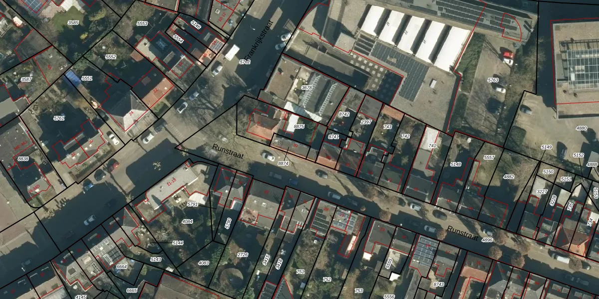 Runstraat 30 is gelegen op kadastraal perceel WSL01G8874. Deze kadastrale aanduiding is uniek en wordt gebruikt door het Kadaster om eigendomsrechten en andere zakelijke rechten vast te leggen. Het perceel maakt onderdeel uit van de kadastrale gemeente Woensel.