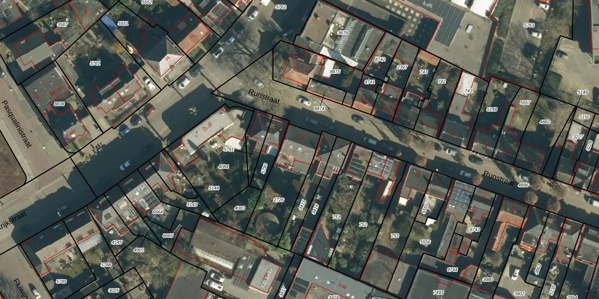 Het perceel waarop Runstraat 35 staat heeft een oppervlakte van 460 m². Dit is een groot perceel. De perceeloppervlakte wordt geregistreerd door het Kadaster. Gedetailleerde informatie over de maten van dit perceel kunt u vinden in het rapport Kadastrale kaart met maatvoering van Runstraat 35.