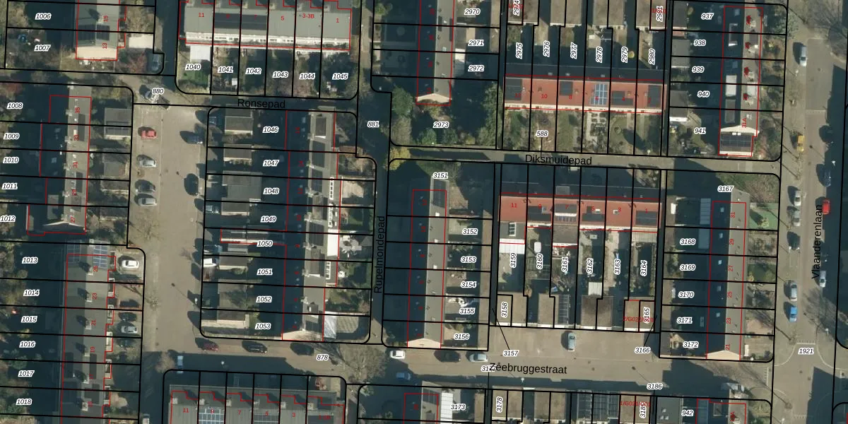 Gebruik de zoekbalk of klik op een perceel voor informatie over de adressen binnen dit perceel.